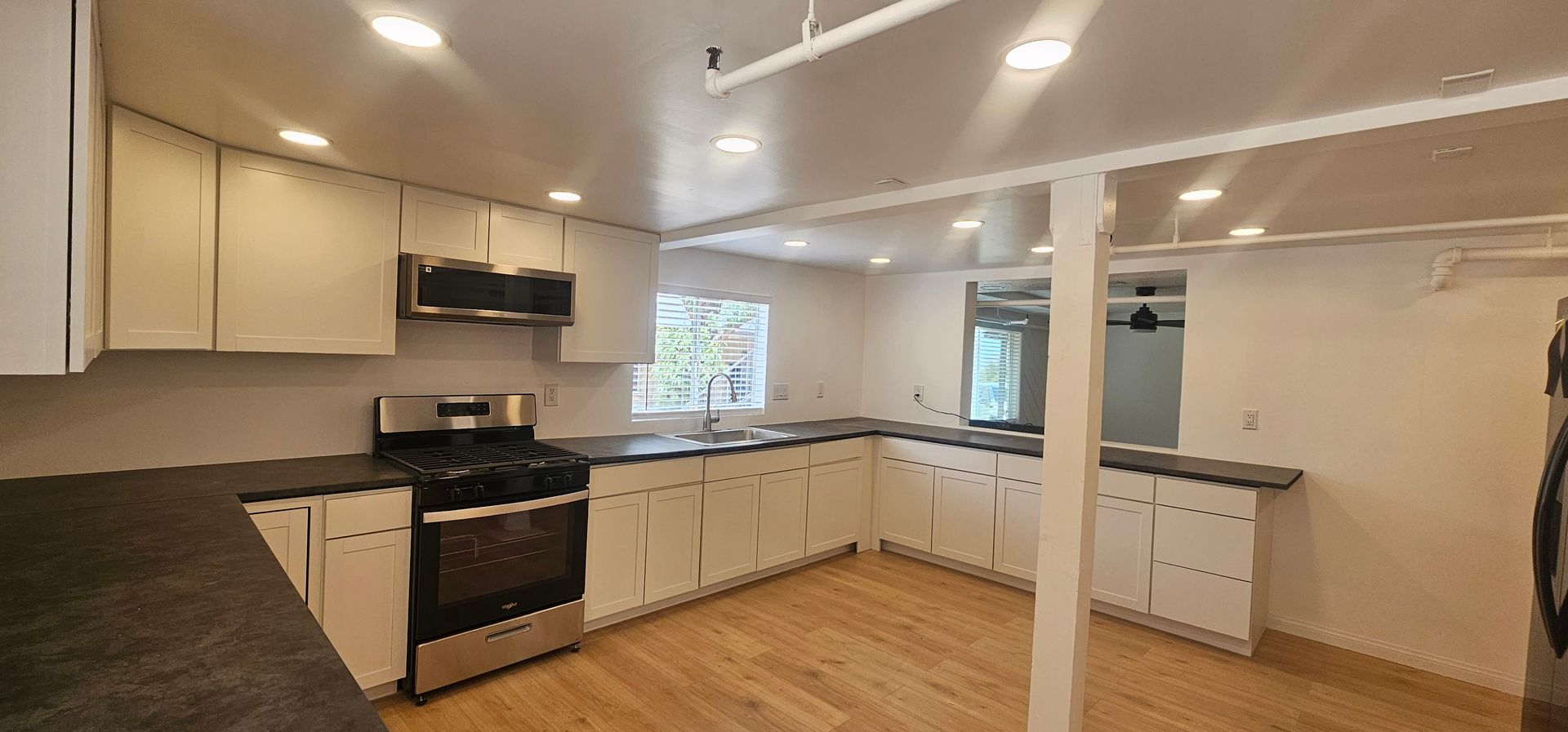 3 Bedroom 1 Bath Upstairs, rest of the bedroom downstairs. New paint, new bathroom, new floors, new plumbing, new fixtures, New appliance, new roof. through out. Brand new appliance
